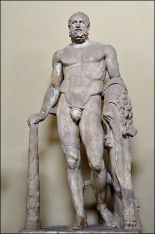 Hercule (section XXXVII numéro 3), demi-dieu, héros de nombreuses aventures, reconnaissable à sa massue et à sa peau de lion.
